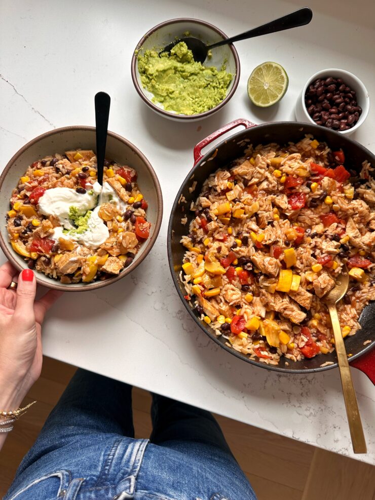 My oldest loves when I serve this with extra cheese and guac, my middle guy likes picking out the corn (ha!), and my toddler is just happy to scoop up anything with a spoon. And I’m happy because they’re all eating a balanced meal with protein, fiber, and veggies in one bowl.