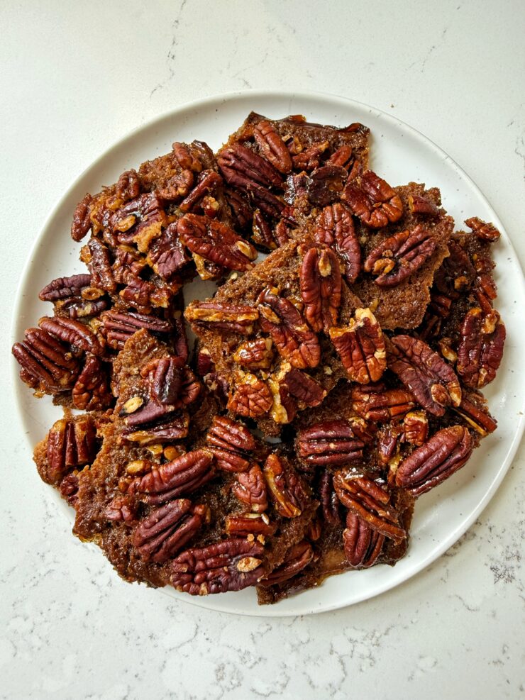 The mixture should thicken slightly and coat the back of a spoon. If you’re unsure, err on the side of slightly undercooked, it will still set in the oven. - Can I freeze pecan pie bark?